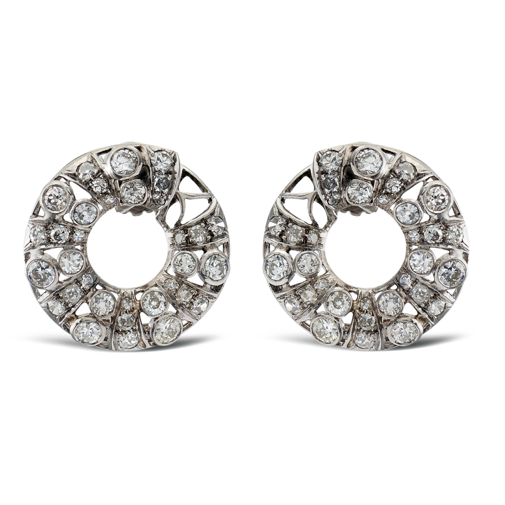 Orecchini creole in platino e diamantiArt Decòpeso 9 gr.taglio brillante vecchio ct 2,40 circa