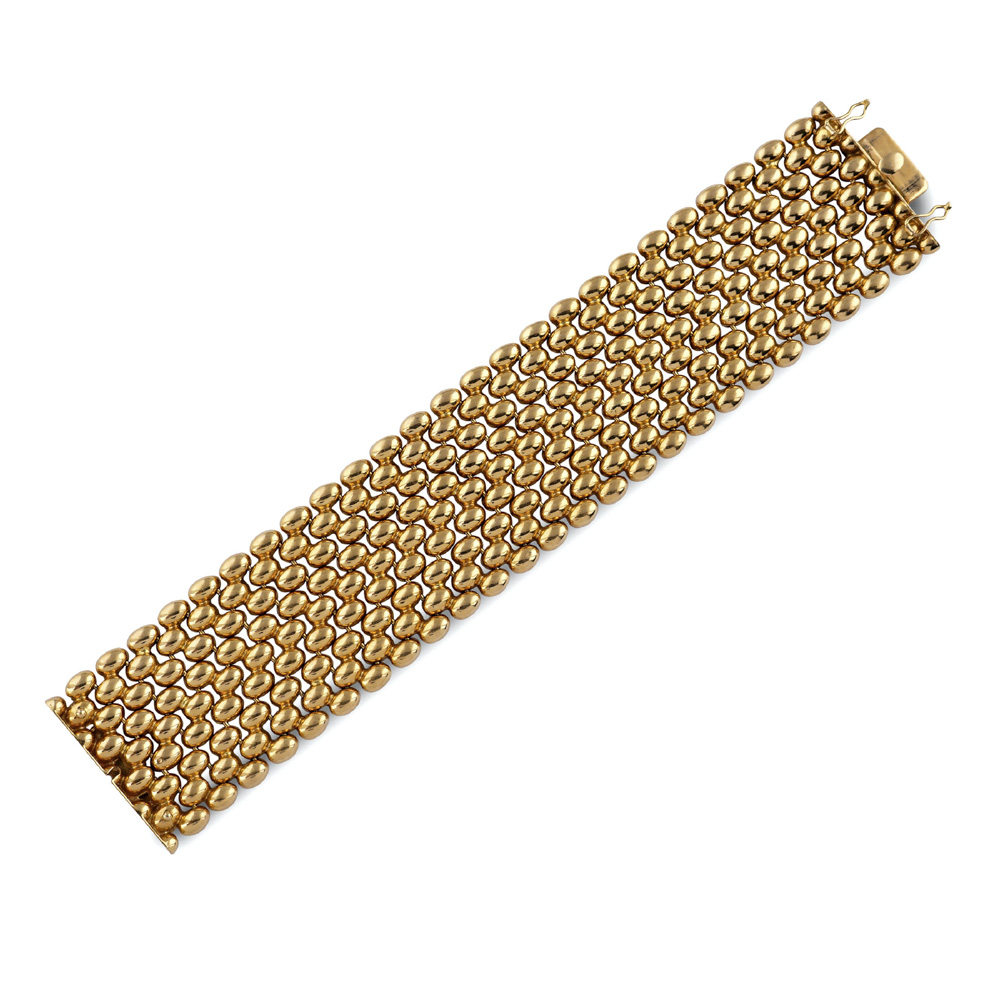 Lot 70 | Bracciale a fascia alta in oro giallo 18ktanni 40/50peso 74 gr.maglia a grana...