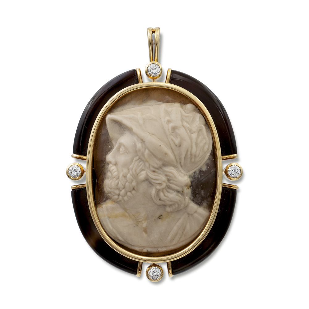 Lot 80 | Pendente cammeo scolpito raffigurante MenelaoXVIII Sec.peso 41 gr.entro...