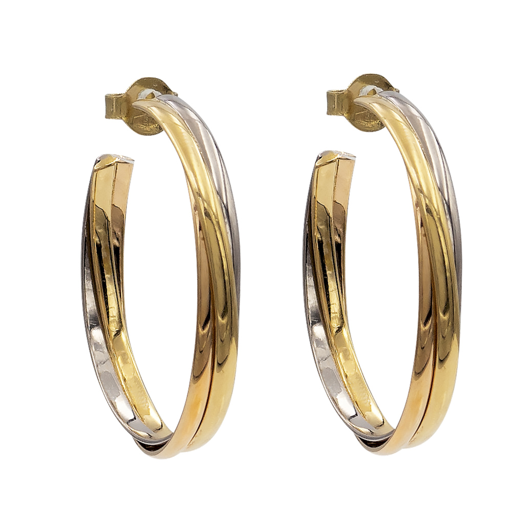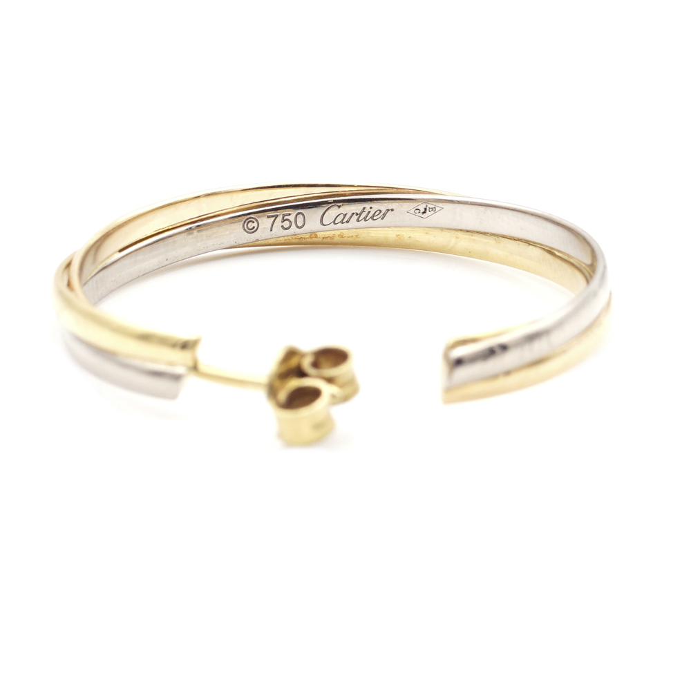 Cartier collezione "Trinity de Cartier" orecchinianni 90peso 10,7 gr.in oro tre colori 18kt, firmati e numerati FR 2474