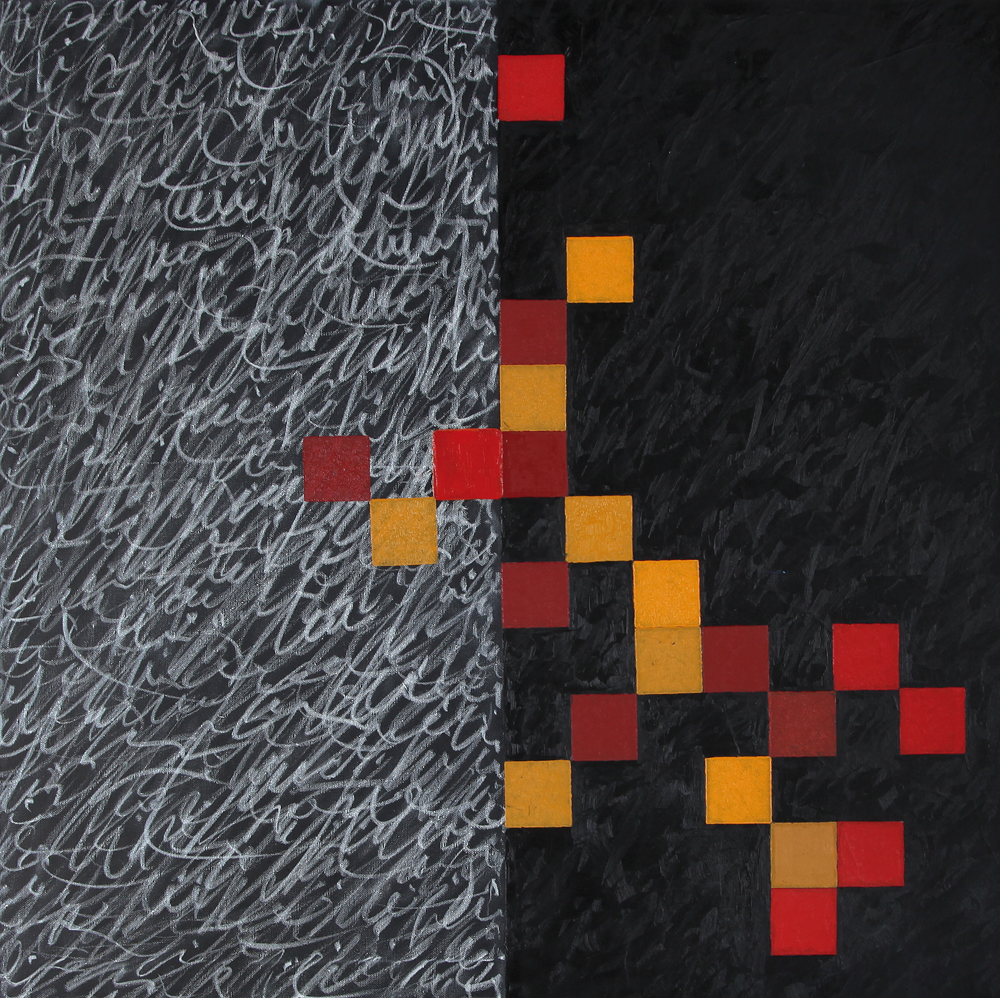RENATO PENGO Padova 1943 Didascalie, 2006 olio su tela cm. 80x80, firma, titolo e anno al retro, opera registrata presso l'Archivio delle opere di Renato Pengo come da dichiarazione della Galleria Dante Vecchiato (PD) allegata, certificato della Telemarket (BS) allegato.