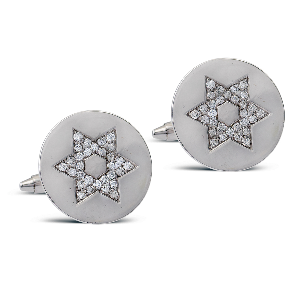 Gemelli di forma circolare in oro bianco 18kt e diamantipeso 9,5 gr.taglio brillante ct 0,60 circa disposti a raffigurare la stella di David