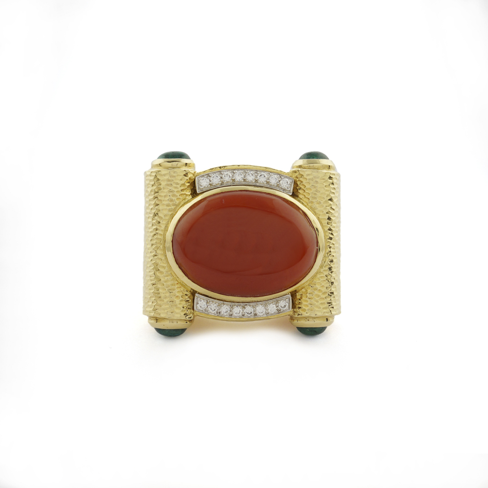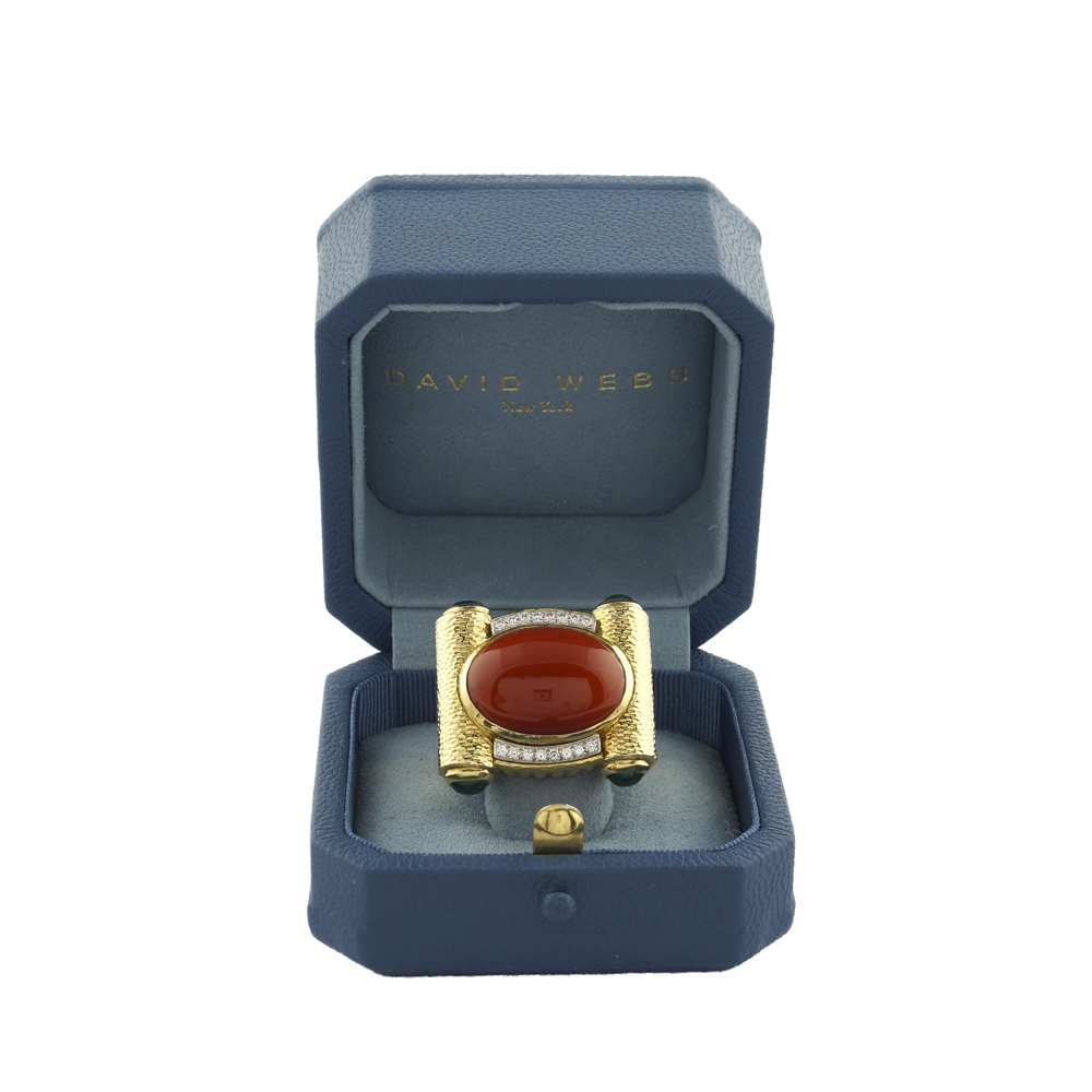 David Webb, anello con corallo rossopeso 38.34 gr.taglio cabochon, ai lati...
