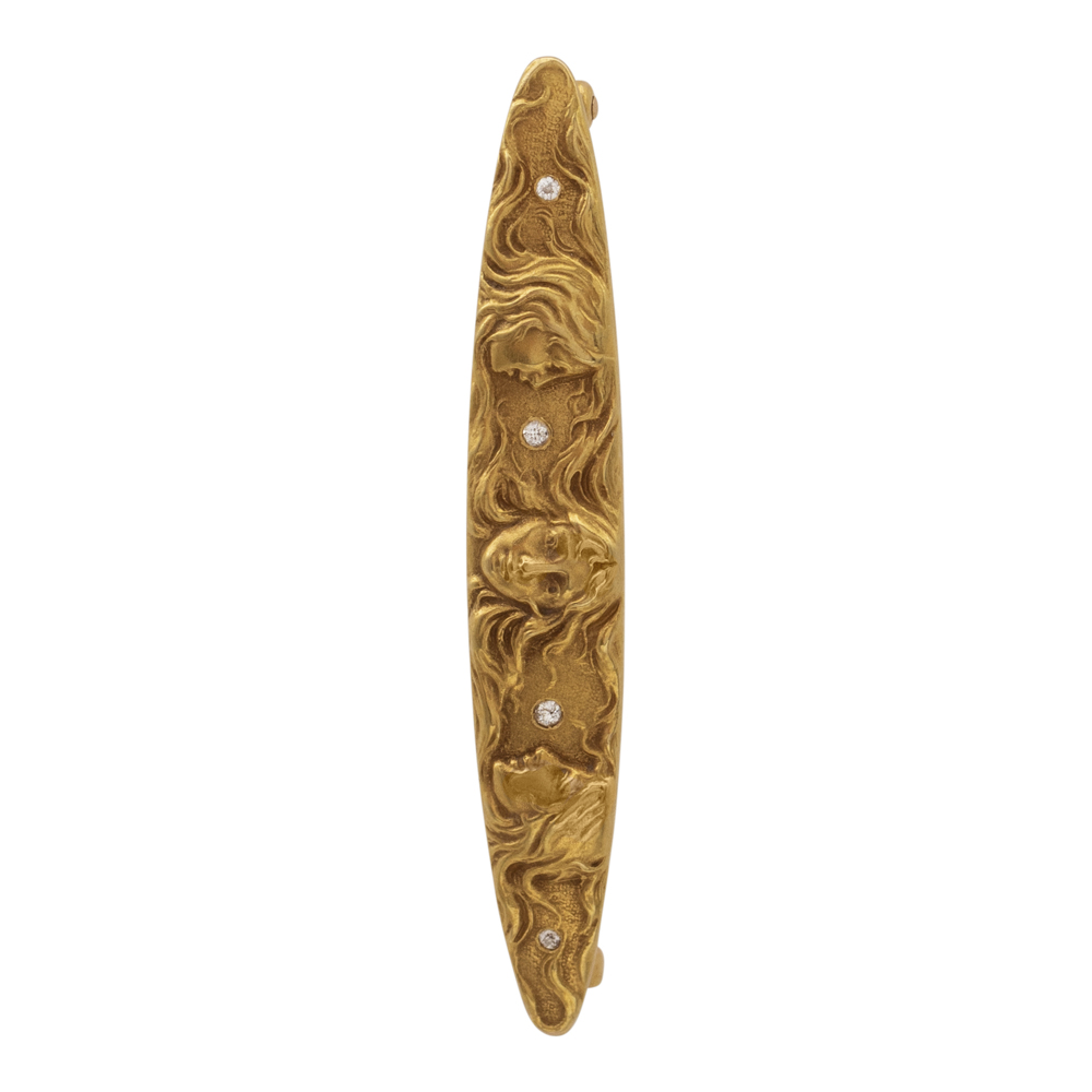Spilla barretta Art Nouveauprimi '900peso 4 gr.in oro giallo 14kt e diamanti taglio brillante antico