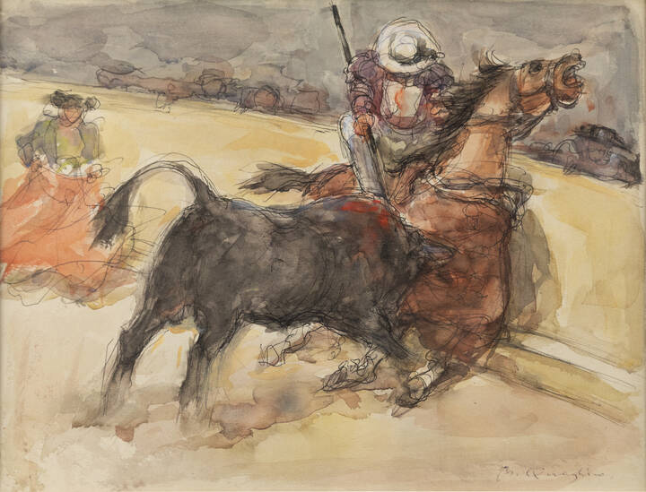 MASSIMO QUAGLINO<BR>Refrancore (AT) 1899 - 1982 Torino<BR>"Tauromachia"