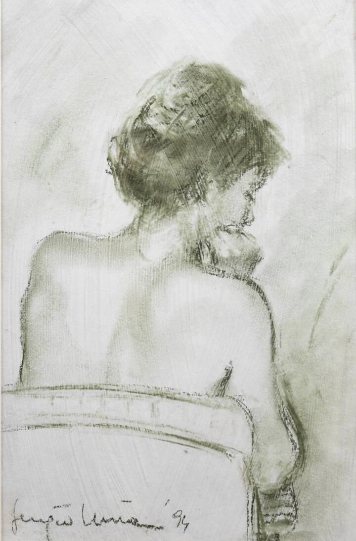 SERGIO UNIA<BR>Roccaforte di Mondovì (CN) 1943<BR>"Fanciulla seduta vista di schiena" 1994