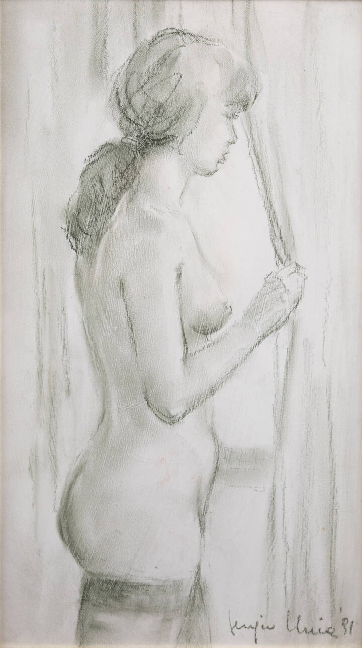 SERGIO UNIA<BR>Roccaforte di Mondovì (CN) 1943<BR>"Nudo con calze alla finestra" 1991