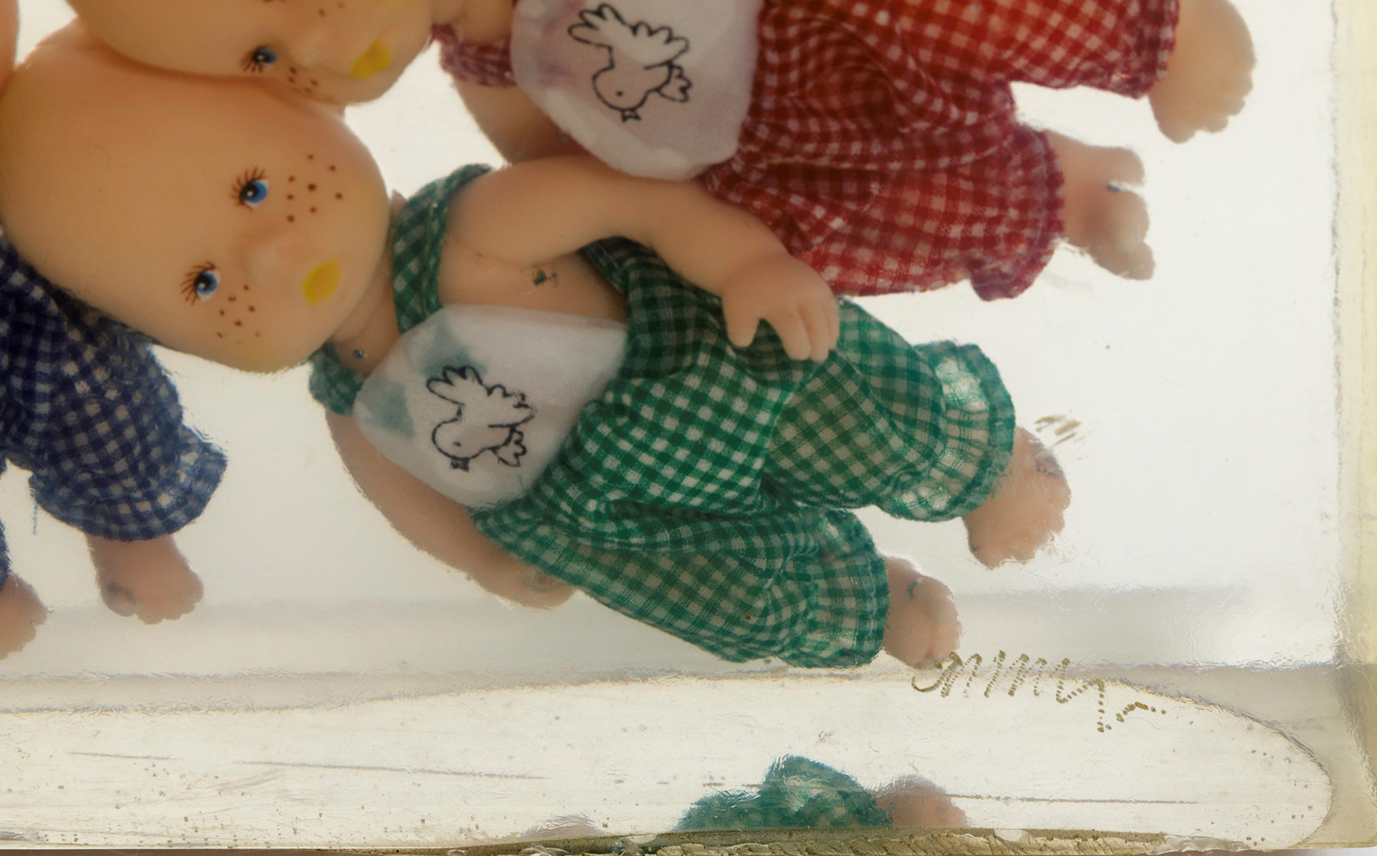 bamboline in plexiglas, cm 41x31,5x7,5 firmato e numerato es. 42/100 Certificato di garanzia su fotografia firmato dall’artista