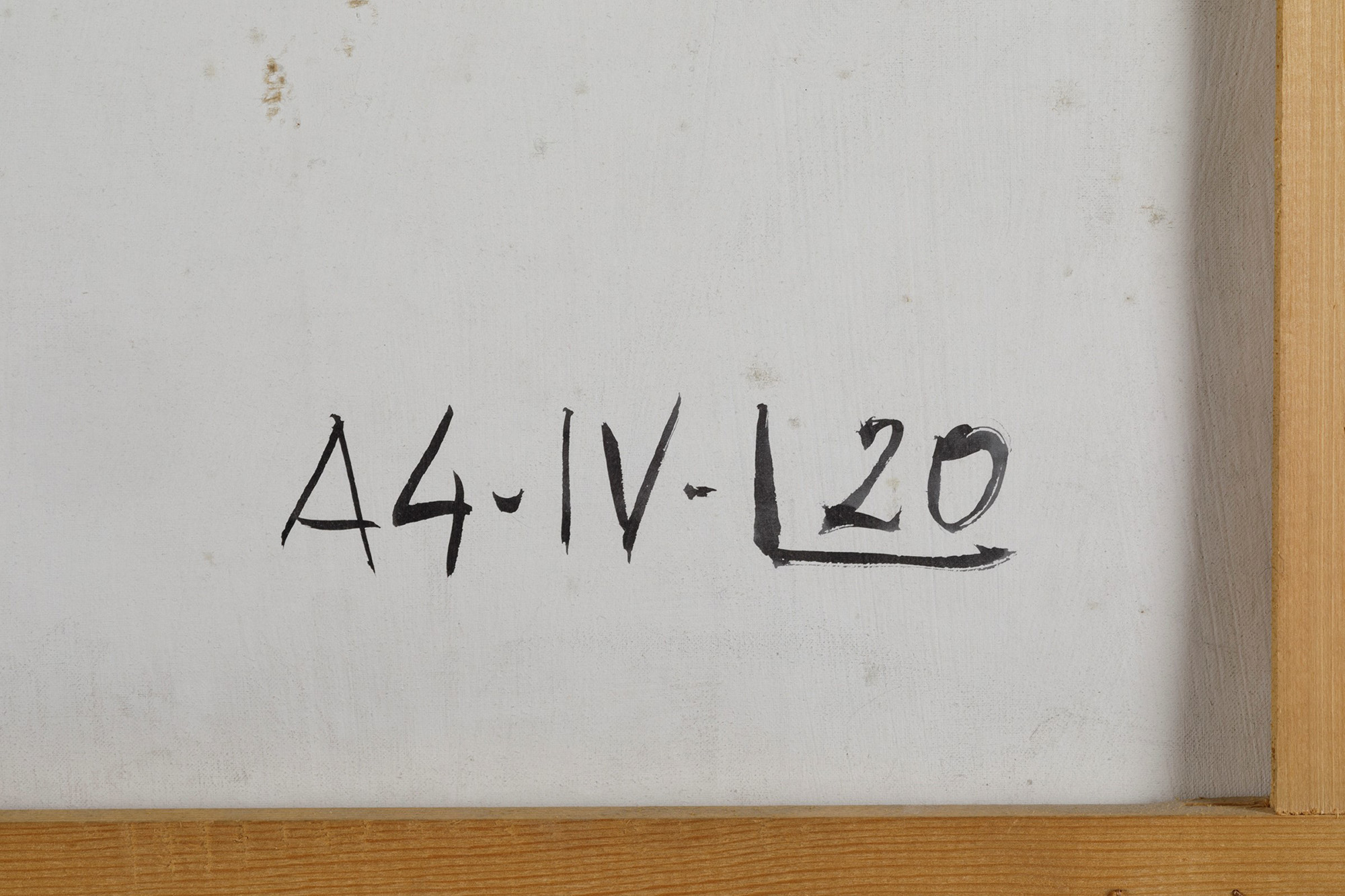 tela emulsionata, cm 77x53,5 firmato e datato in basso al centro firmato, intitolato e datato al retro Etichetta al retro della Galleria Salvatore Ala, Milano