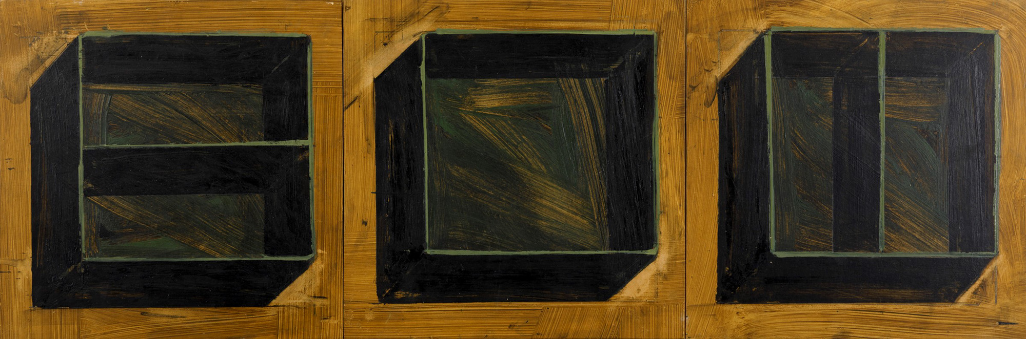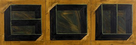olio su tavola, cm 33x99 firmato e datato al retro, su ogni pezzo trittico iscritto al retro: "3 pezzi inseparabili" Autentica dell’artista su fotografia, Provenienza: Collezione Borroni, Bollate (MI) Esposizioni: L’esordio romano, a cura di Antonello Rubini – Galleria Delloro, Roma, ripr. a catalogo, p. 38 L’arte in Italia dal 1945, Cremona, Fondazione Città di Cremona, maggio - luglio 2007, ripr. a catalogo, p. 429