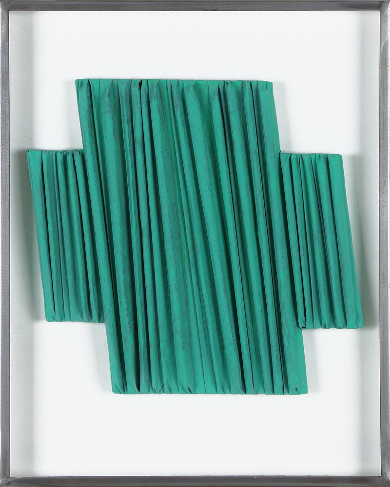UMBERTO MARIANI Milano 16/11/1936 Senza titolo, 2004 vinilico su piombo applicato su tavola sagomata cm. 36x36 con cornice realizzata dall'artista cm. 56,5x45, firma, titolo e anno al retro, dichiarazione d'autenticità dell'artista su foto.