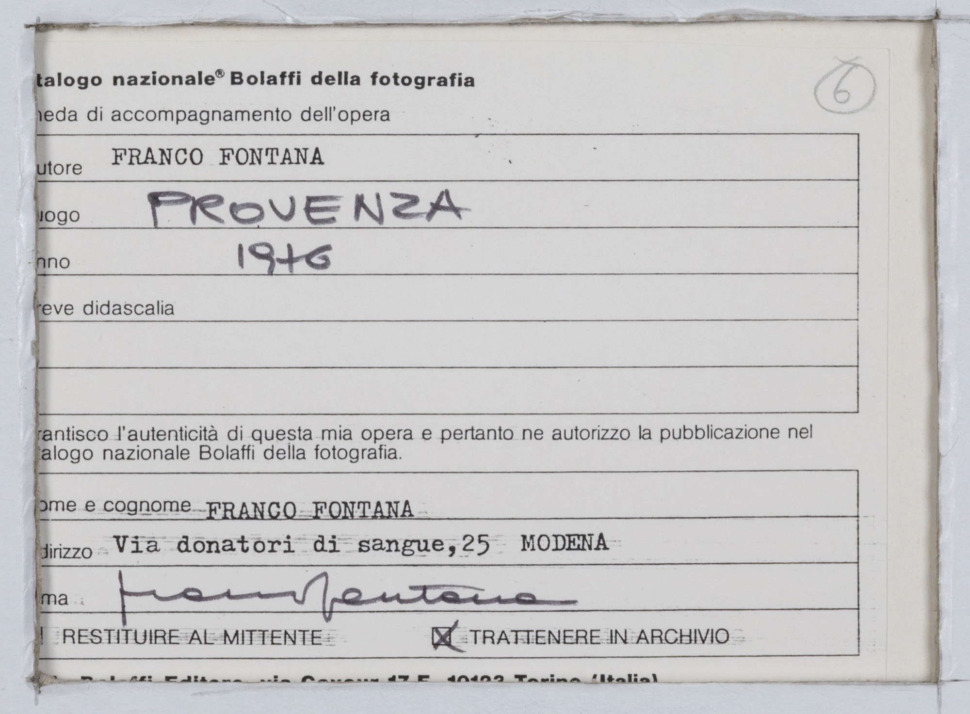 stampa fotografica a colori, cm 17,7x12,3 Etichetta al retro del fotografo