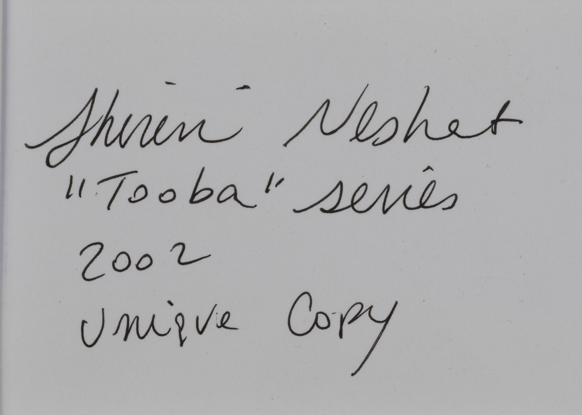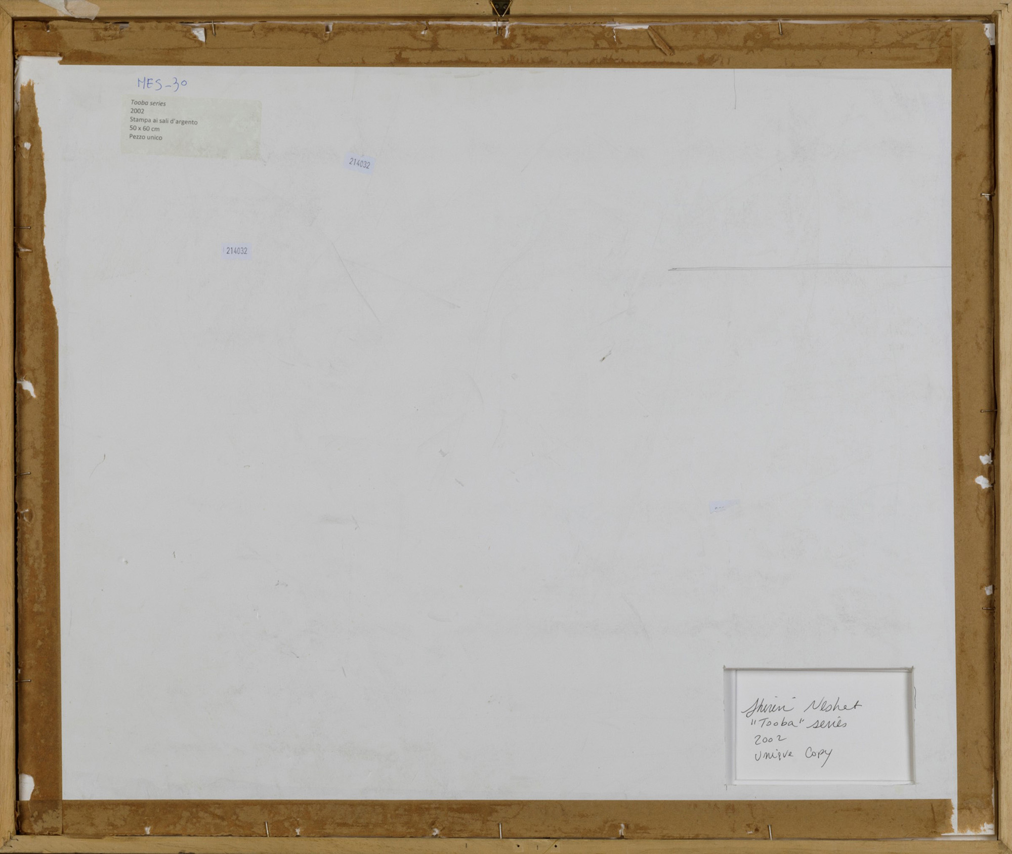 stampa alla gelatina ai sali d'argento, cm 50x60 intitolata e datata al retro con inchiostro nero pezzo unico Certificato di autenticità dell'artista, Esposizioni: I have come along with the wind. Kiarostami, Neshat photographs, Repetto Gallery, London, 26 May – 19 June 2015 Shirin Neshat, Il sogno dell’Iran, De Primi Fine Art, Lugano, 24 September – 6 November 2015