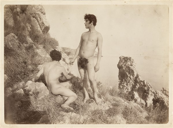 Wilhelm Von Gloeden Two young man on the rocks 1900 Stampa fotografica vintage