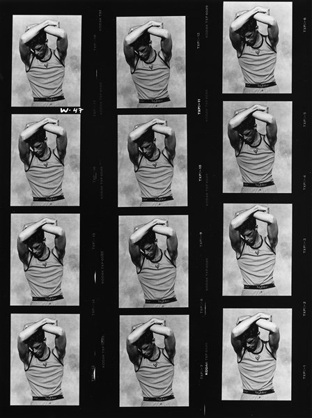 Quattro provini a contatto vintage alla gelatina e sali d'argento dalla campagna Byblos del 1989/90.