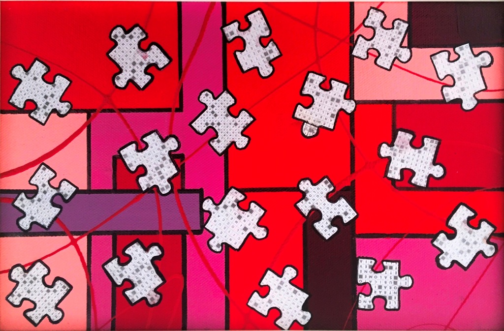 ARZUFFI GIAMPIERO / DIEGO RACCONI Micro anagramma” opera a 4 mani, tecnica mista su tela cm. 30x20. Sul retro è intitolata, datata e autenticata da entrambi gli artisti nel 2012. Autentica su foto con archivio. Micro anagram ”work with 4 hands, mixed technique on canvas cm. 30x20. On the back it is titled, dated and authenticated by both artists in 2012. Authentication on photo with archive