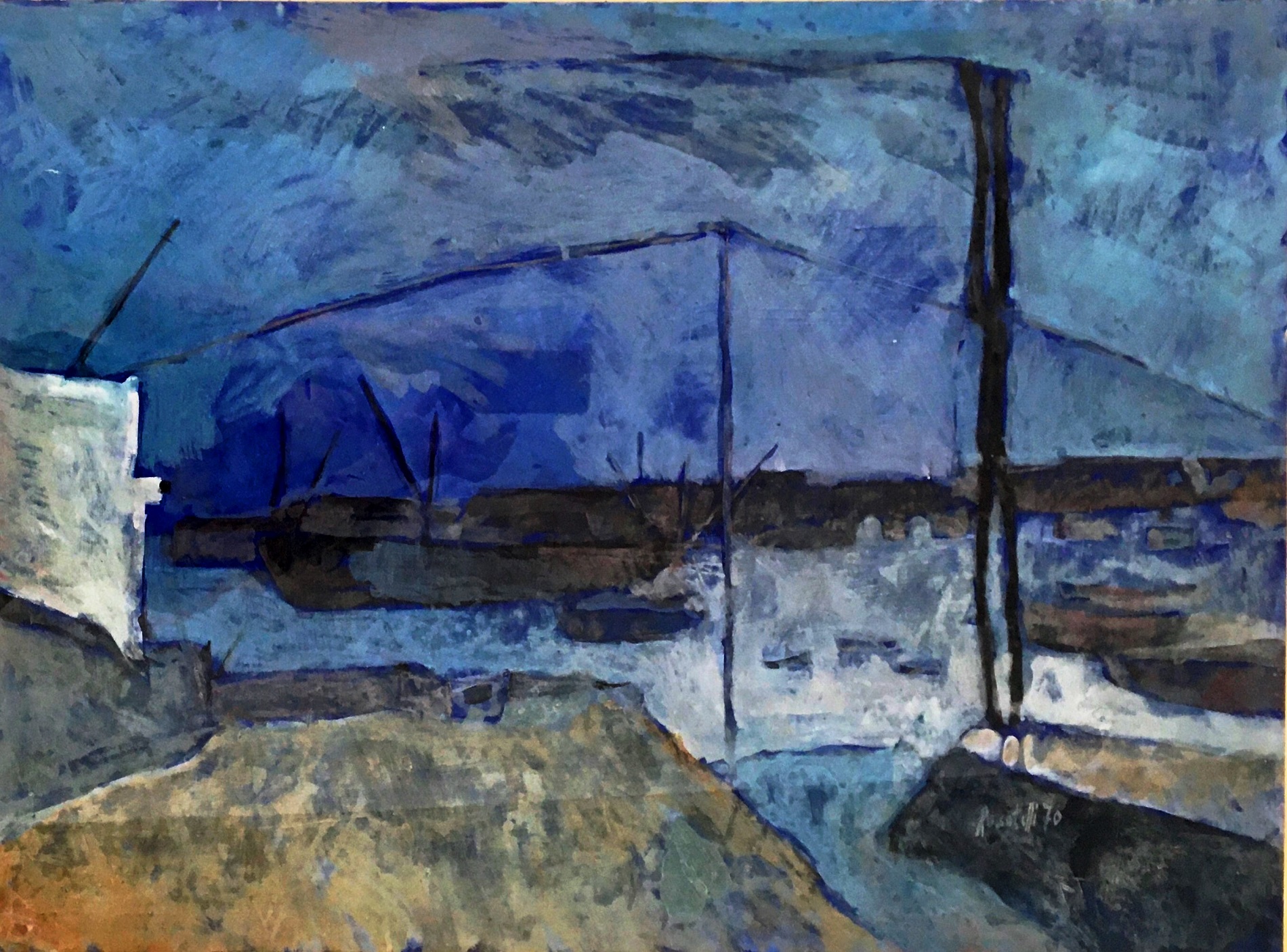 “Porto di Otranto” tecnica mista su carta cm. 70x52 del 1970. Firmata in basso a sinistra. Sul retro numerata e intitolata. Autentica su foto a cura del maestro. Bari 1946