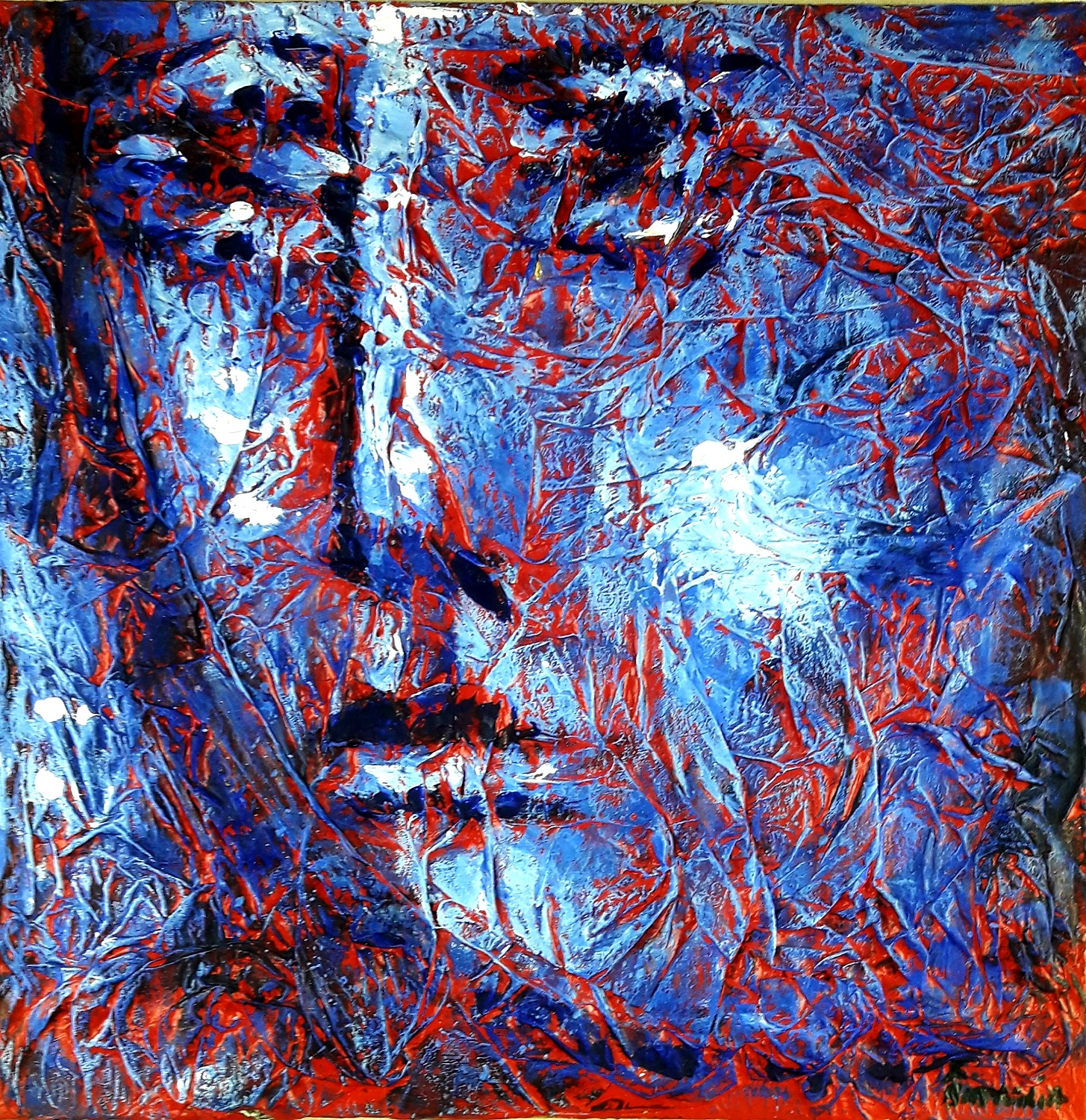 “Volto concettuale” giornali, olio e acrilico su tela 40x40 del 2015. Opera firmata in basso a destra e sul retro è firmata, intitolata e datata. Autentica su foto a cura dell’artista. Reggio Calabria 1943