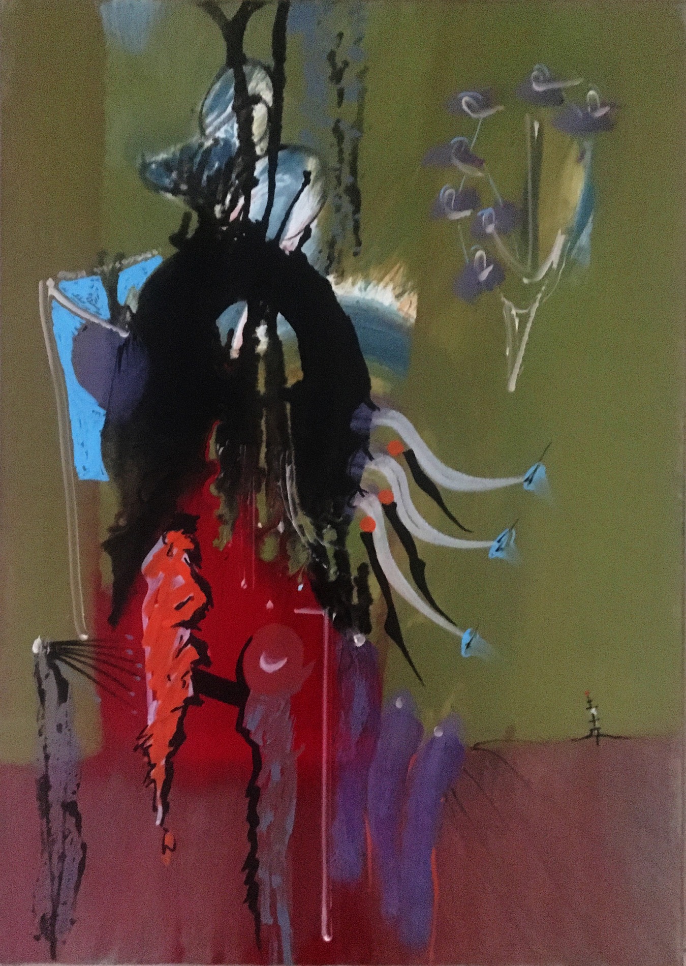 "The tent" oil and mixed media on canvas 50x70 cm. The work is signed and titled on the back. Authentication on photography by the artist