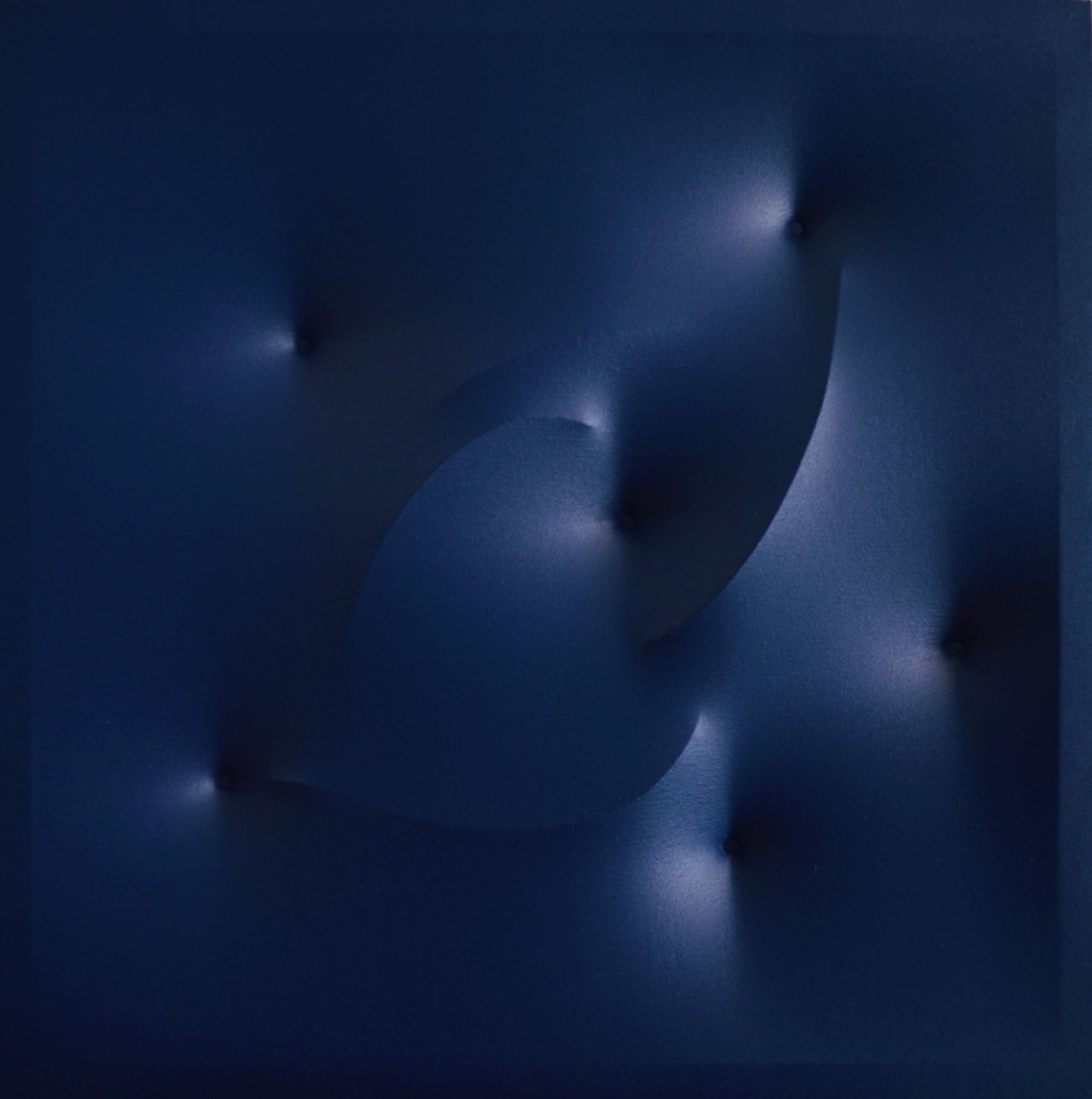 “Dreamin In” acrilici su tela estroflessa cm 50x50x3 del 2016; firma in alto sul bordo, firma, titolo e anno al retro, dichiarazione d' autenticità dell'artista su foto, opera priva di cornice. Albaredo D’Adige 1953