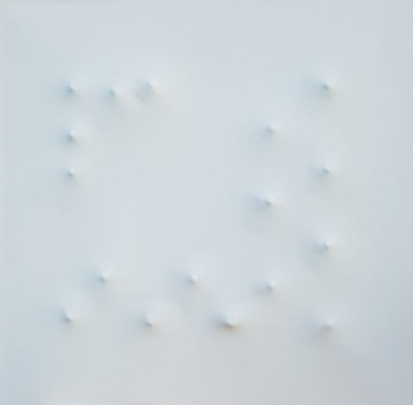 “N° 17 spari di fucile cal. 30 e pistola 44” su lastra di alluminio cm 100x100 colore bianco. Sul retro l’opera è firmata e descritta. Autentica su due foto fronte e retro. Brescia 1948 - 2016