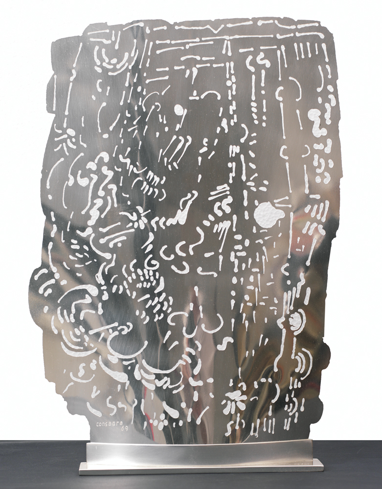 PIETRO CONSAGRA Mazara del Vallo (TP) 04/10/1920 - 16/07/2005 Intercontinentale, 1969 scultura in metallo cm. 42,5x29x5,5; esemplare 19/50, tiratura sulla base, firma e anno in basso a sinistra, dichiarazione d'autenticità dell'artista su certificato allegato, pubblicato sul catalogo "Dieci scultori italiani", a cura di Giuseppe Marchiori, Edizioni La Loggia Sculture, 1973.