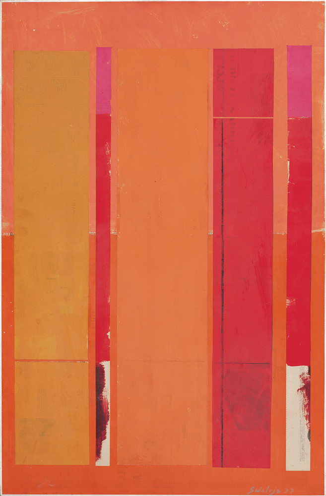 TOTI SCIALOJA Roma 16/12/1914 - Roma 01/03/1998 Senza titolo, 1977 tempera su carta applicata su tela cm. 90,8x59; firma e anno in basso a destra, etichetta del Centro d'Arte Arbur al retro, opera registrata presso la Fondazione Toti Scialoja di Roma come da dichiarazione su foto.