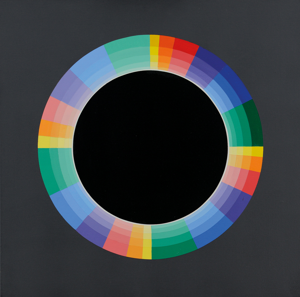 HORACIO GARCIA ROSSI Buenos Aires (Argentina) 1929 - Parigi 05/09/2012 Couleur electrique lumiére, 2009 acrilici su tela cm. 50x50, firma, titolo, anno e località (Paris) al retro, dichiarazione d'autenticità dell'artista su foto, certificato di garanzia e autenticità della Galleria Oltremare (Castiglioncello-LI) allegato.