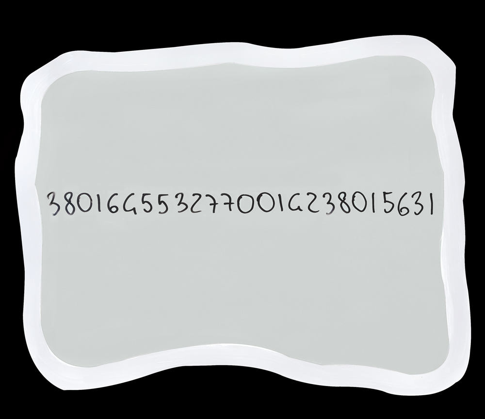 MICHELANGELO PISTOLETTO Biella (Vc) 25/06/1933 Frattali, 1999-2000 smalti su specchio sagomato cm. 57x76, firma, titolo e anno al retro, dichiarazione d'autenticità dell'artista e timbro dell'Associazione Culturale Arte Nova - Fuoriuso (PE) su foto.