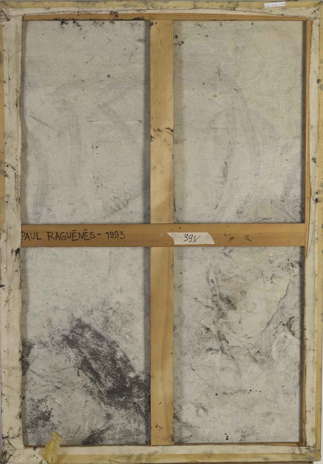 Paul Raguenes (1964) COMPOSIZIONE catrame su tela, cm 116x81 sul retro: firma...