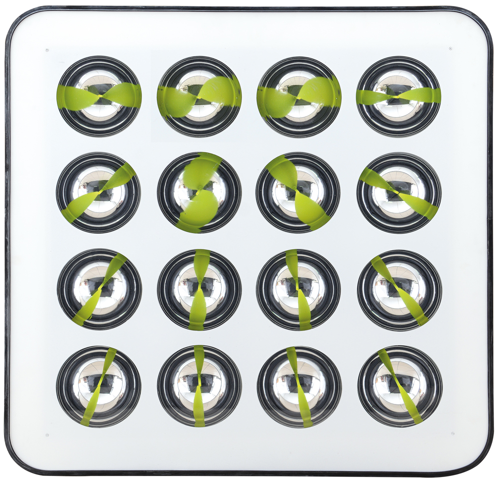 FRANCO COSTALONGA Venezia 1933 Ottico cinetico, 1975 assemblaggio di materie plastiche (16 semisfere) cm. 80,5x80,5; firma e anno dell'artista al retro, dichiarazione di autenticità e archivio dell'artista su foto, opera priva di cornice.