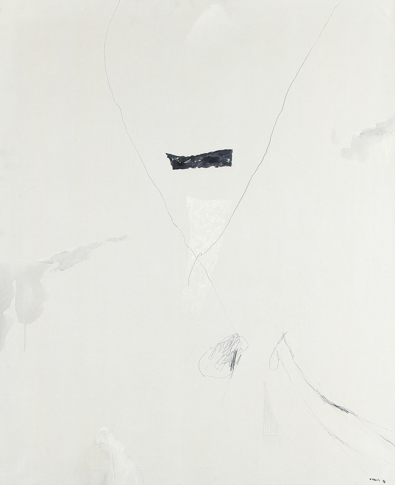 MARIO RACITI Milano 19/04/1934 Presenze assenze, 1973 olio e tecnica mista su tela cm. 100x70, firma e anno in basso a destra, titolo, firma, anno, timbri ed etichetta della Galleria d'Arte Spriano (Omegna) al retro, dichiarazione d'autenticità dell'artista su foto. Esposizioni: -Galleria Studio Arte 79, Matera -Galleria Editalia, Roma, 1974 -Galleria Spriano, Omegna, 1974 Bibliografia: -"Mario Raciti, presenze assenze", Galleria Studio Arte 79, Matera (con anno errato). -"Mario Raciti", Galleria Spriano, Omegna, 1974.