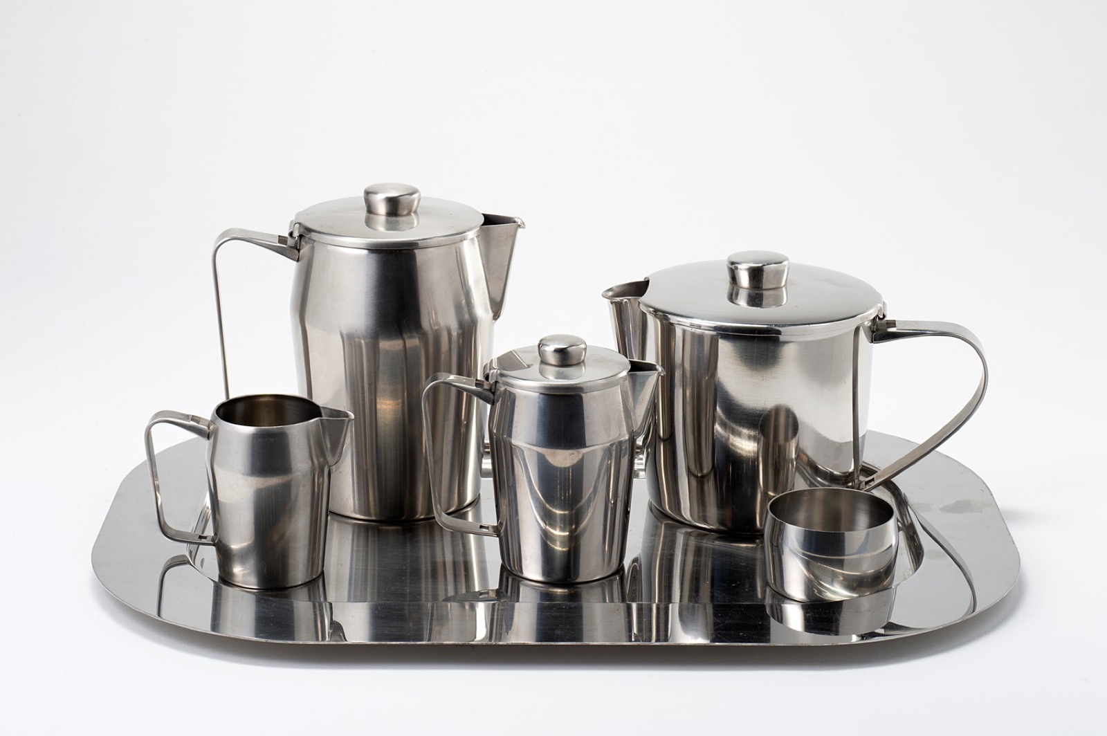 composto da sei pezzi in acciaio: te, latte, caffè, acqua calda e cioccolato + zuccheriera