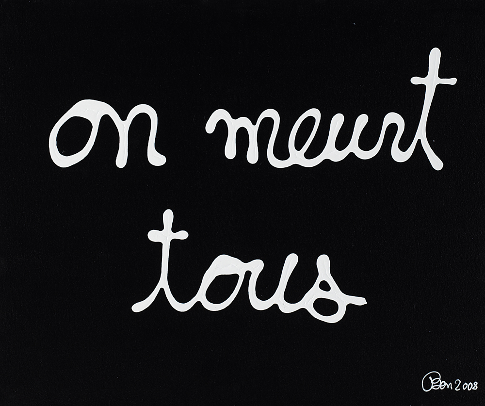 BEN VAUTIER Napoli 1935 On meurt tous, 2008 smalti su tela cm. 54x65, firma e...