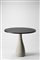 tavolo con piano rotondo in lamiera pressopiegata e verniciata alle polvere epossidiche nero ramato sablè. Base in cemento sagomato. Firma ed etichetta originale.
