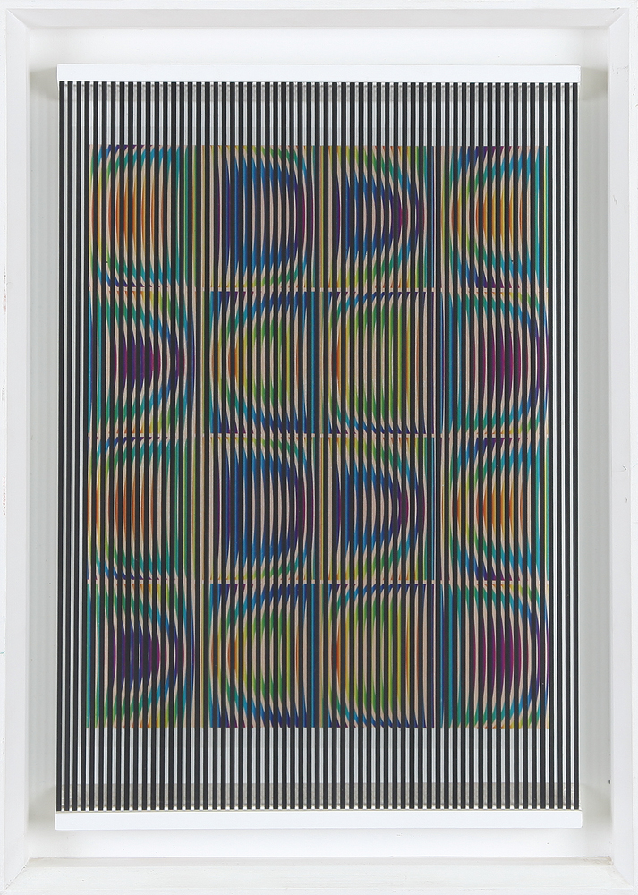 ALBERTO BIASI Padova 02/06/1937 Senza titolo, ottico dinamico, 1988 tecnica mista e pvc su tavola cm. 50x35 compresa la cornice, titolo, anno, firma e timbro del Gruppo N al retro, dichiarazione d'autenticità e archivio numero C.O. 156 dell'artista su foto, pubblicato sul catalogo Dep Art 2013 rilievi ottico dinamici, repertorio 159, pagina 134.