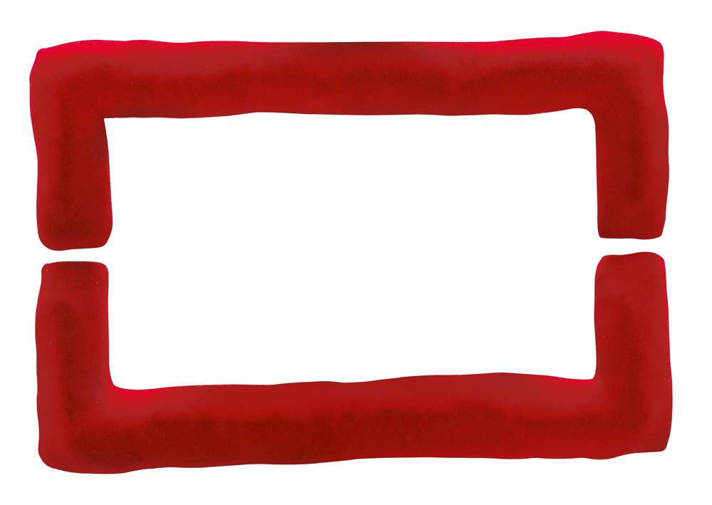 PINO PINELLI Catania 01/10/1938 Pittura R., 1986 tecnica mista su due elementi rossi cm. 15x44 e 14x44, totale cm. 29x44, firma, titolo, anno e località (Milano) al retro dell'elemento in alto, dichiarazione d'autenticità dell'artista su foto, entro teca in plexiglass.