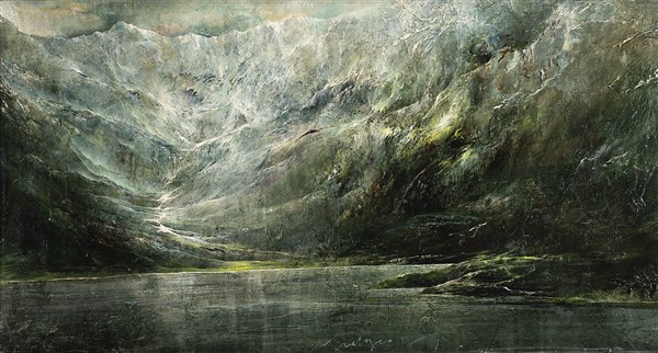 Velasco Vitali "Sera allo Sluga" 1986 acrilico su tela cm 54x100 Firmato in bass