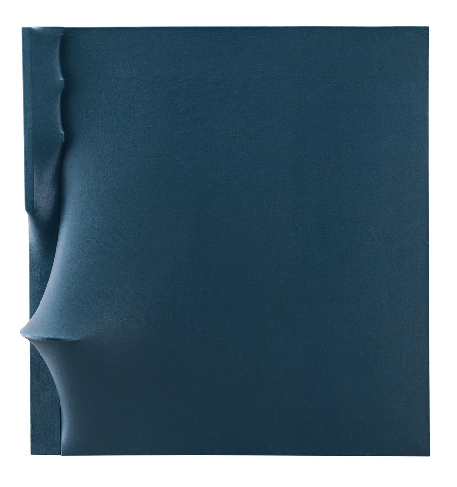 AGOSTINO BONALUMI Vimercate (Mi) 10/07/1935 Blu, 1971 tela estroflessa e tempera vinilica cm. 70x65, firma, anno ed autentica dell'artista al retro, dichiarazione d'autenticità dell'artista su foto, dichiarazione d'autenticità dell'artista e archivio a cura della Galleria D'Arte Fumagalli (BG) su foto, entro teca in plexiglass.