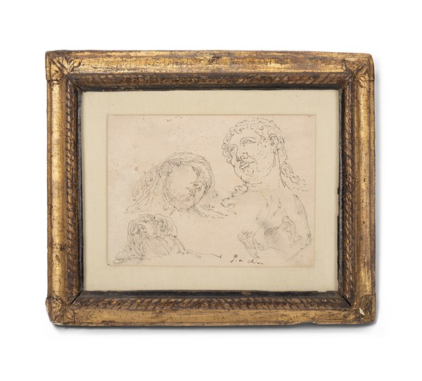 Giorgio de Chirico "Teste mitologiche, teste di dee" 1959 matita su carta applic