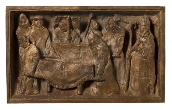 Luciano Minguzzi "I corpi dei Santi vengono portati in Duomo" 1950 bronzo cm 34x