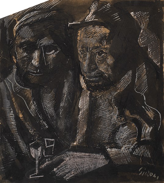 Mario Sironi "Bevitori" seconda metà anni '40 tecnica mista su carta cm 19,9x17,