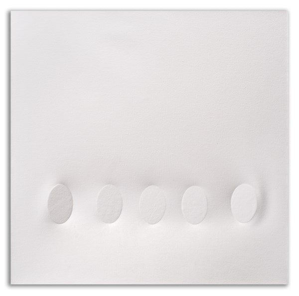 Turi Simeti "5 ovali bianchi" 2003 acrilico su tela sagomata cm 80x80 Firmato al