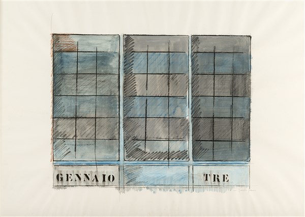 Tano Festa "Gennaio Tre" 1962 tecnica mista su carta cm 70x100 Firmato, dedicato
