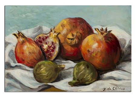 Giorgio de Chirico "Vita silente" 1973 circa olio su cartone cm 17x25 Firmato in