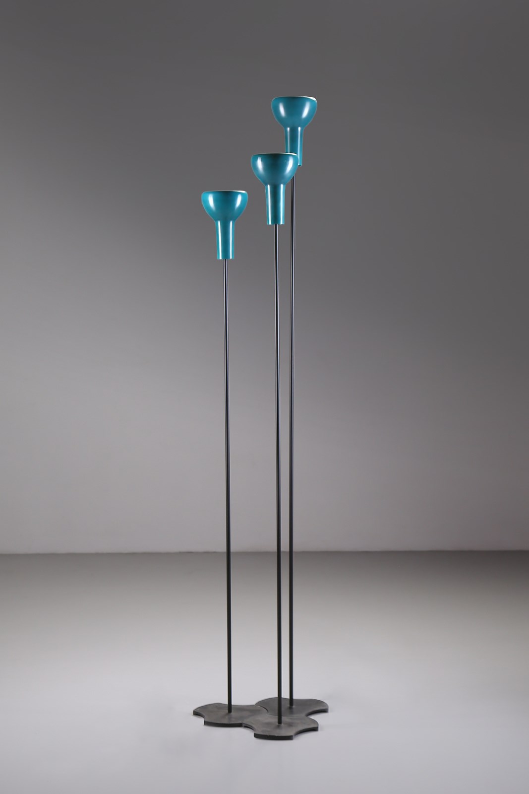 SARFATTI GINO (1912 - 1985) Tre lampade da terra modello 1073/3, prima versione 1956. (3). Ghisa e metallo verniciato.. Cm 42,00 x 198,00 x 42,00. Bibliografia: Romanelli M., Severi S., Gino Sarfatti opere scelte 1938-1973, Silvana editoriale, 2012, p. 454 e p. 285