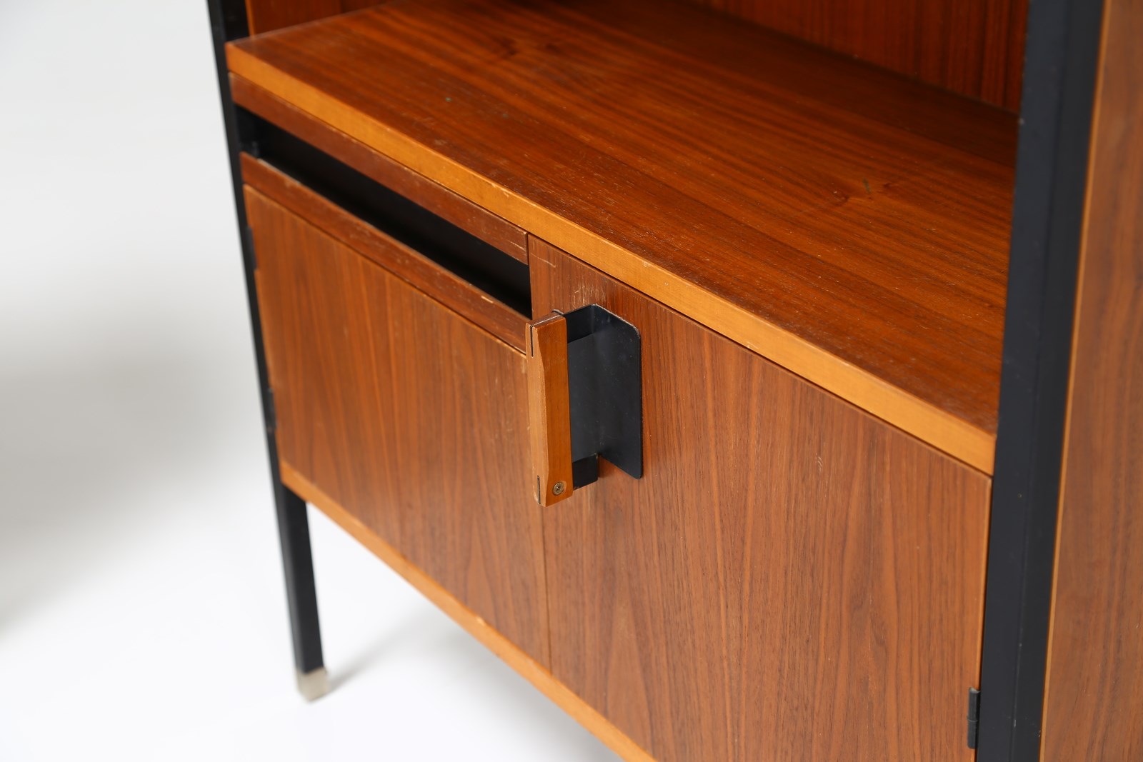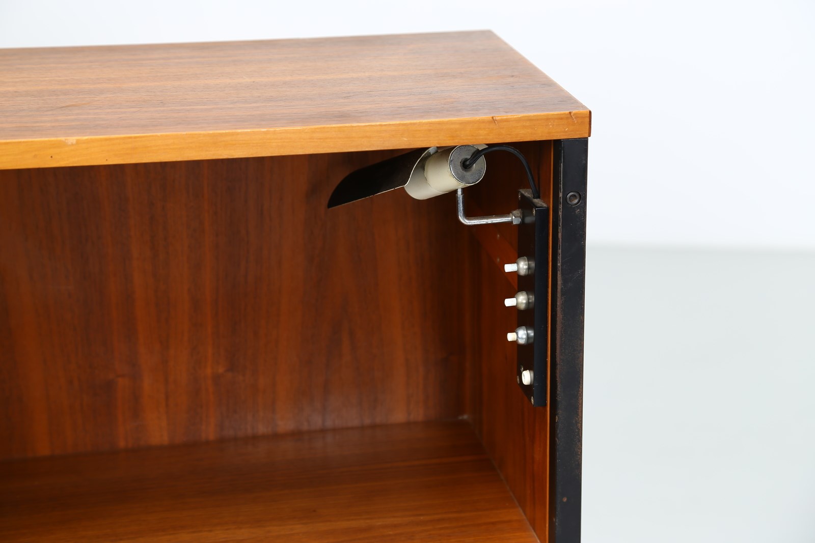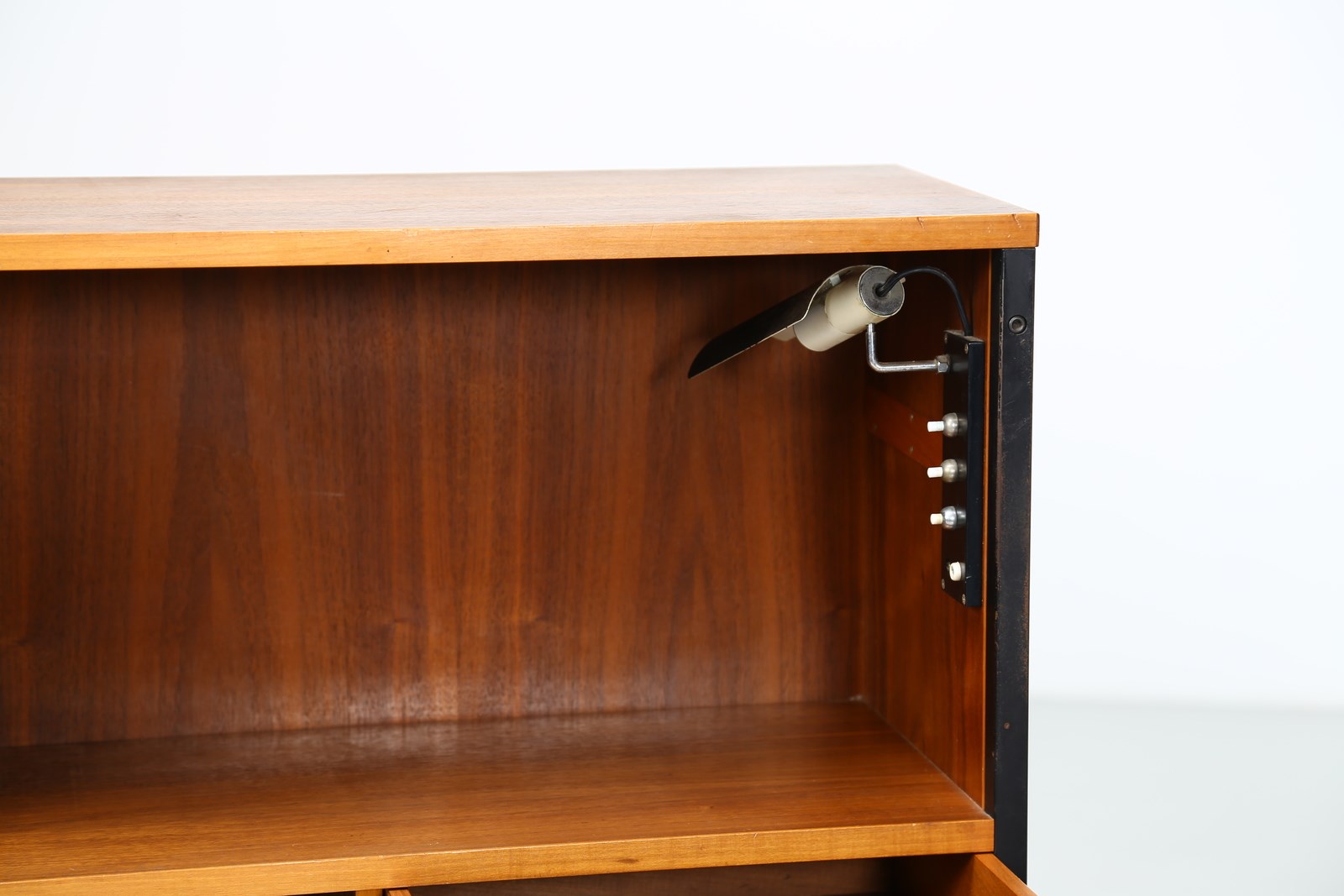 PARISI ICO (1916 - 1996) Coppia di comodini modello Positano, produzione MIM, 1959. (2). Legno di noce e metallo verniciato.. Cm 73,00 x 89,00 x 30,00. Etichetta manifattura. Bibliografia: Domus n. 351 febbraio 1959, p. 49