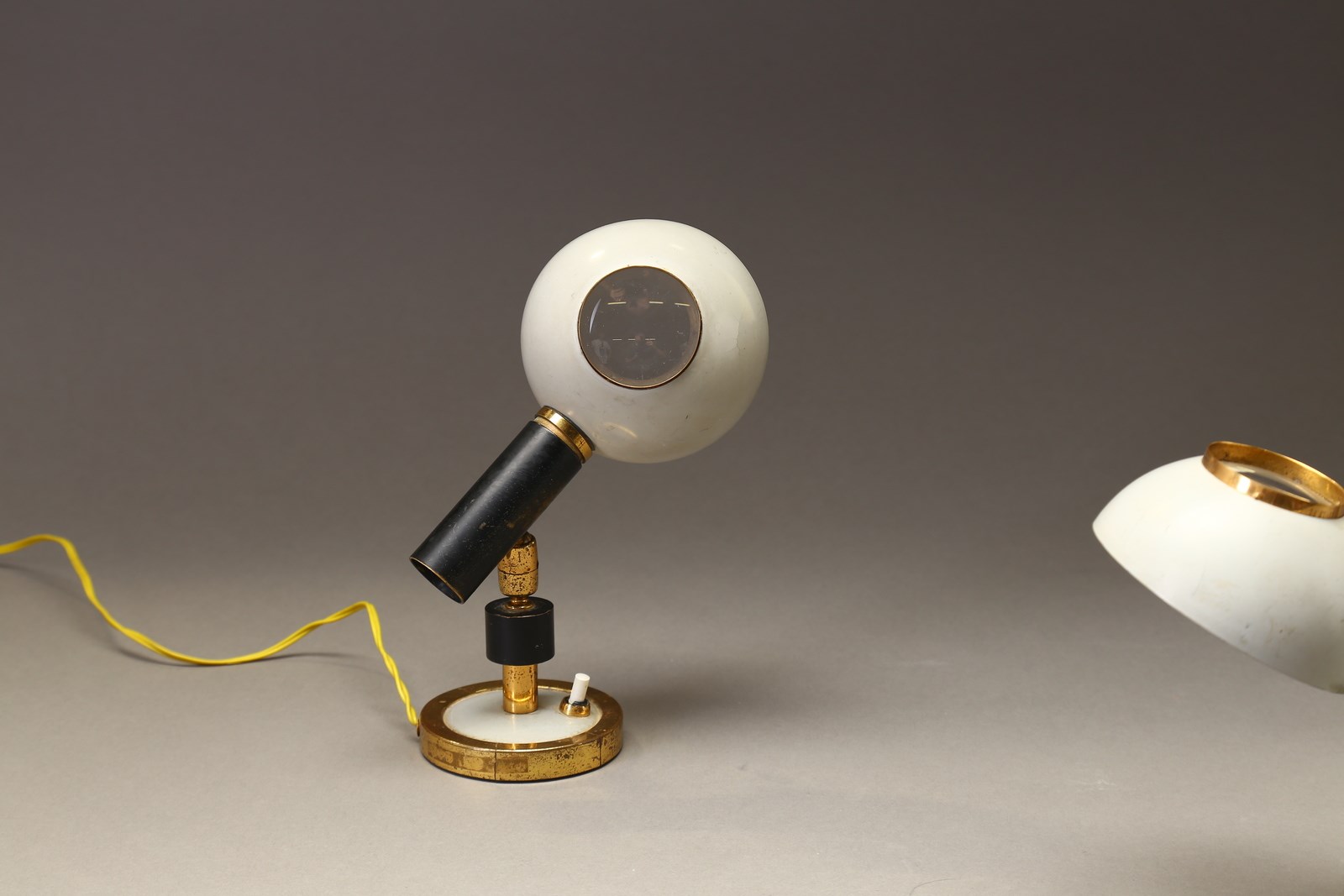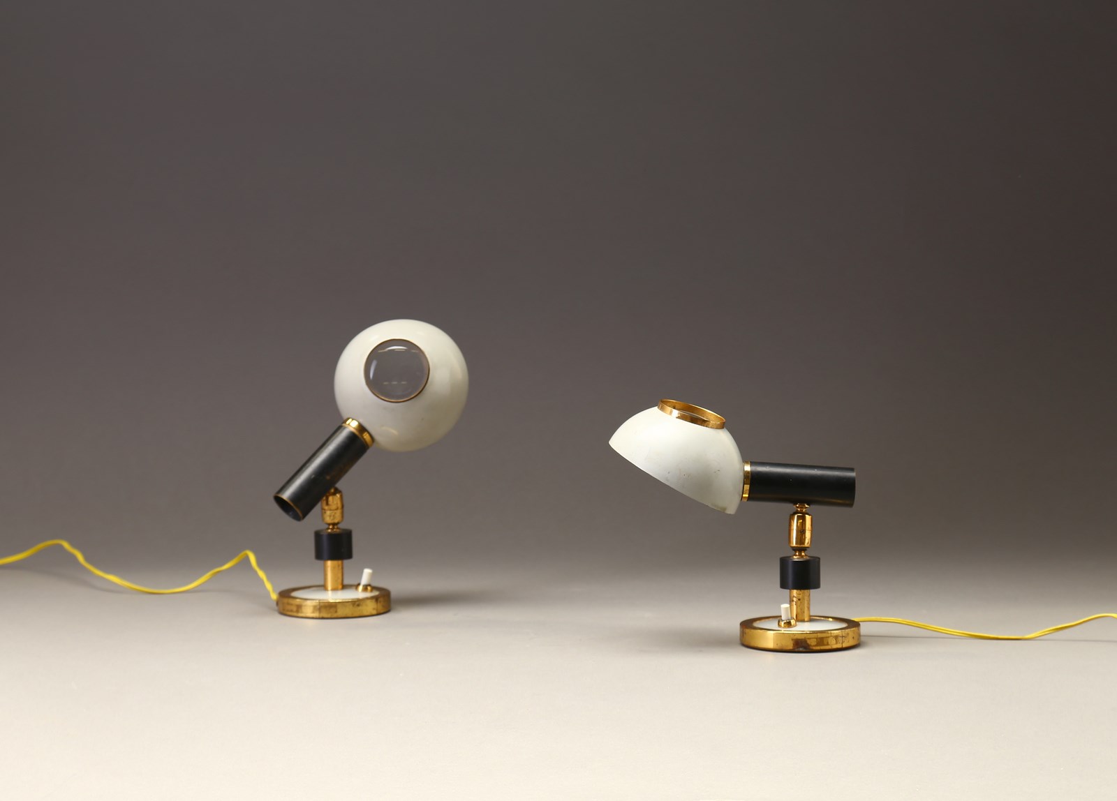 TORLASCO OSCAR (1934 - 2004) Coppia di lampade da tavolo, produzione Lumi anni '50. (2). Vetro, metallo verniciato e ottone.. Cm 10,00 x 21,00 x 10,00.