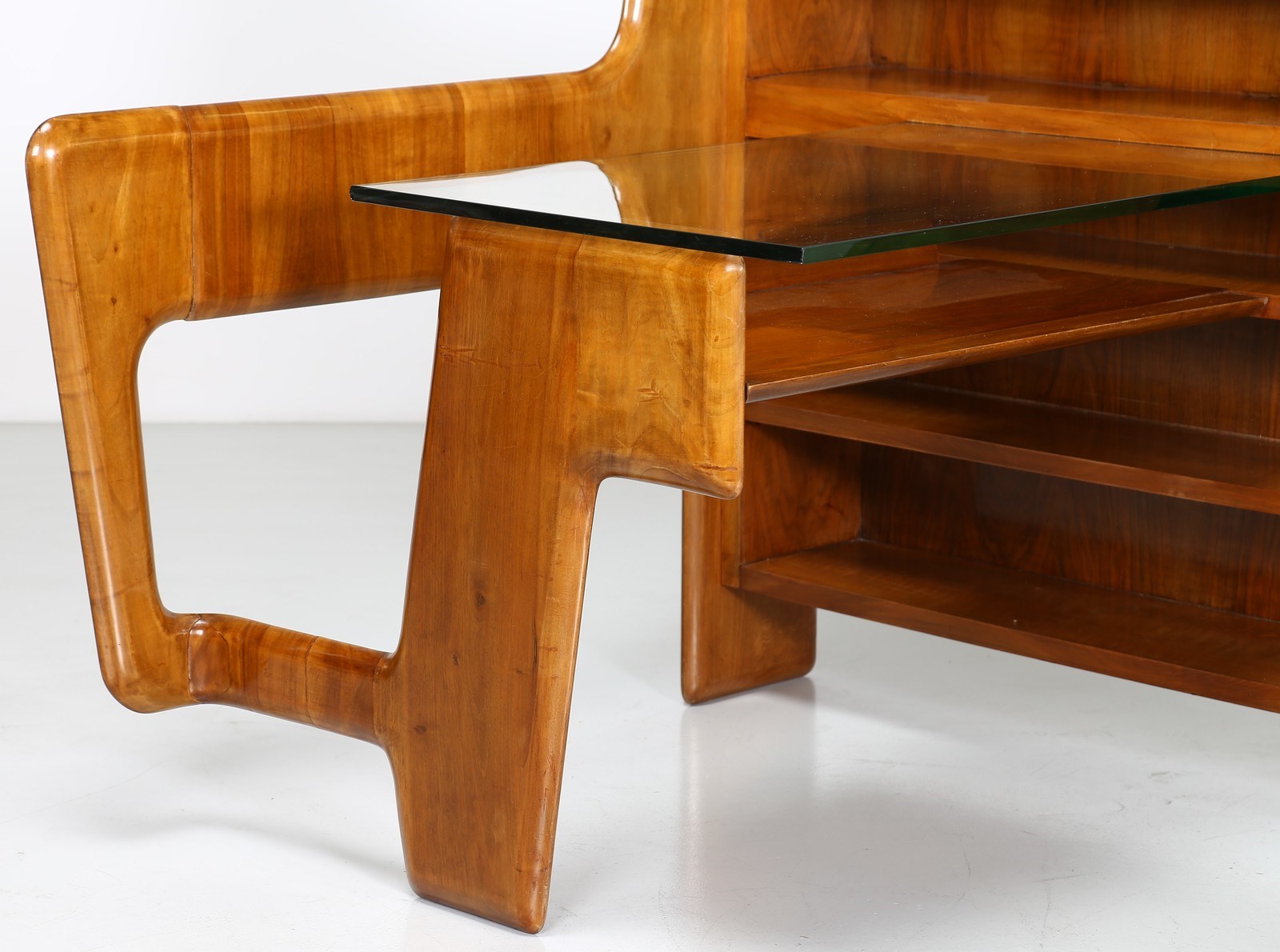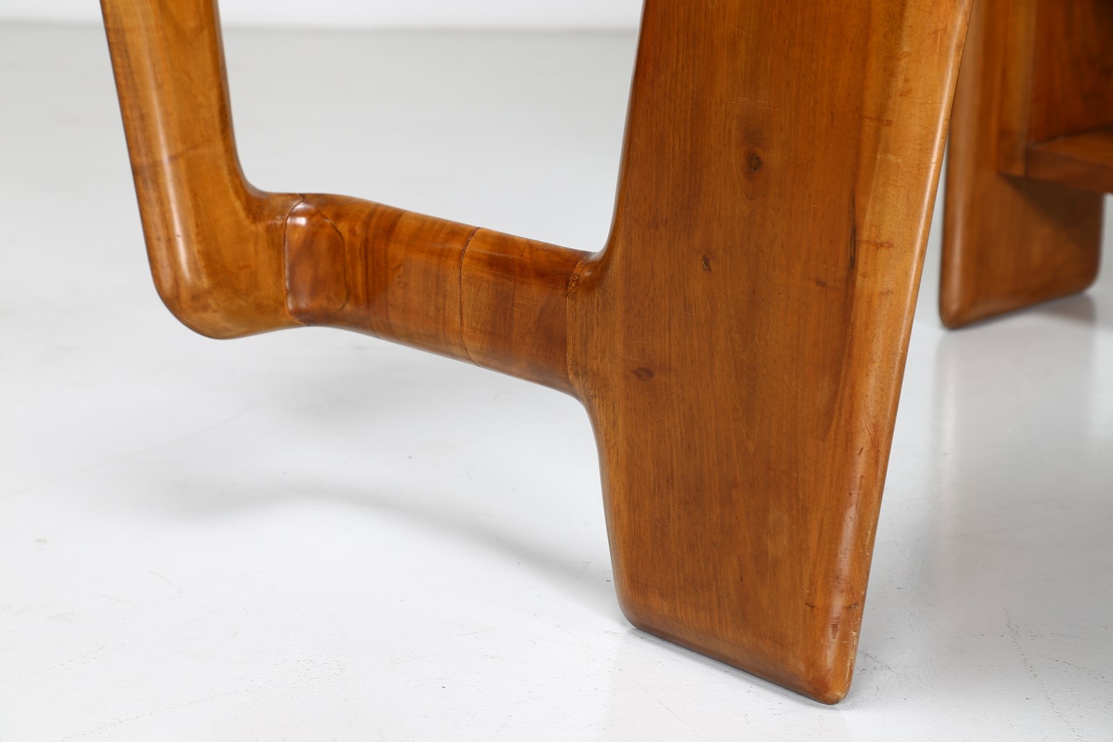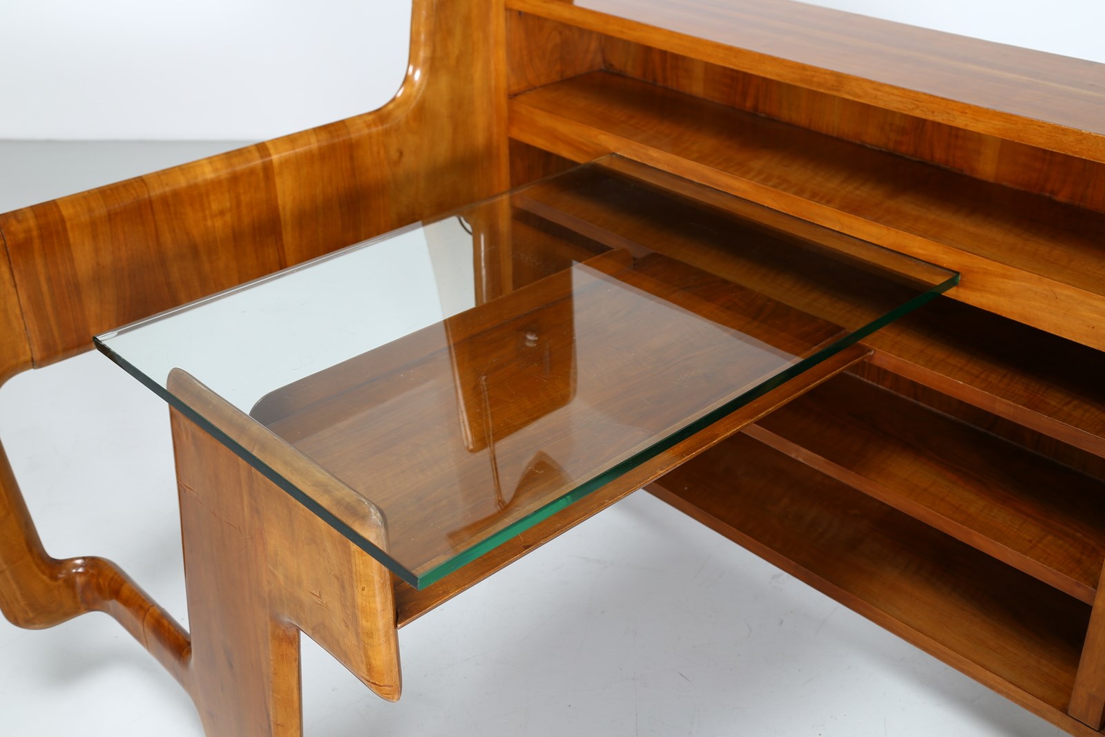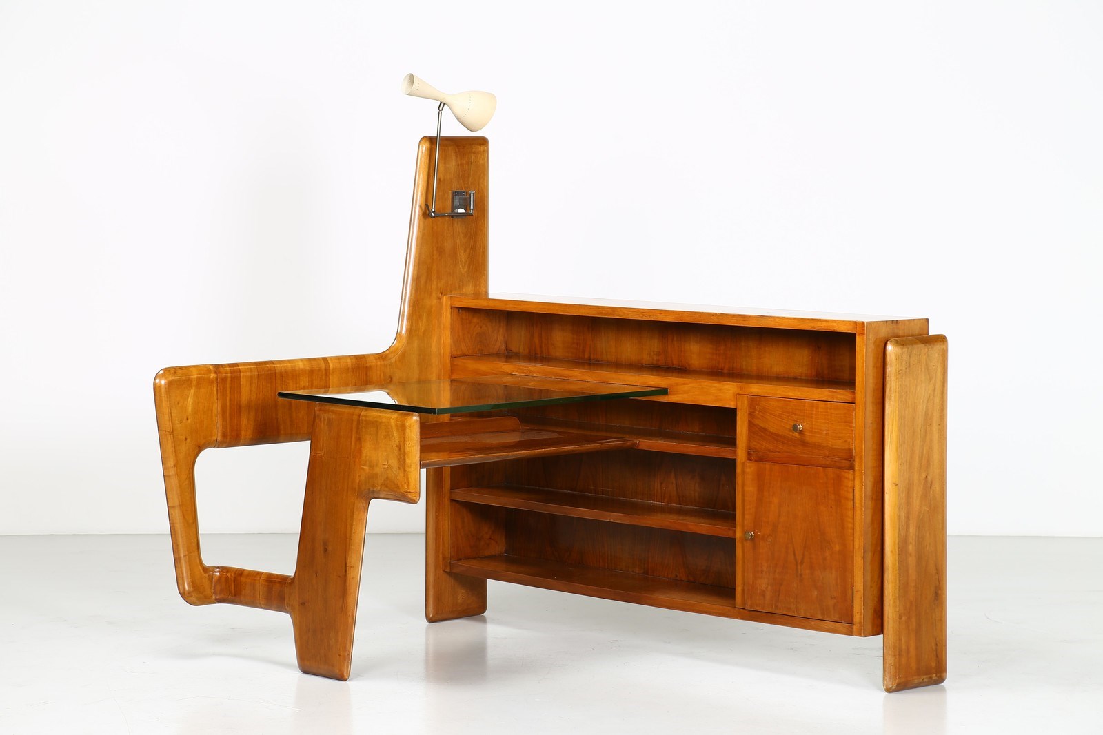 SAIBENE GIANNI (attribuito) Scrivania con lampada anni '50. Legno di noce e cristallo molato. Cm 162,00 x 160,00 x 130,00. Provenienza dimora in Venezia.