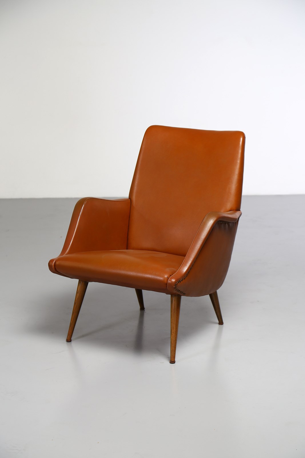 DE CARLI CARLO (1910 - 1999) Coppia di poltrone modello 802, produzione Cassina,1954. (2). Legno di noce e similpelle imbottita.. Cm 66,00 x 80,00 x 64,00. Bibliografia: Gramigna G., Repertorio del design italiano per l'arredamento domestico, 1950- 2000, Ed. Umberto Allemandi & C., 2003, Torino, p. 34.
